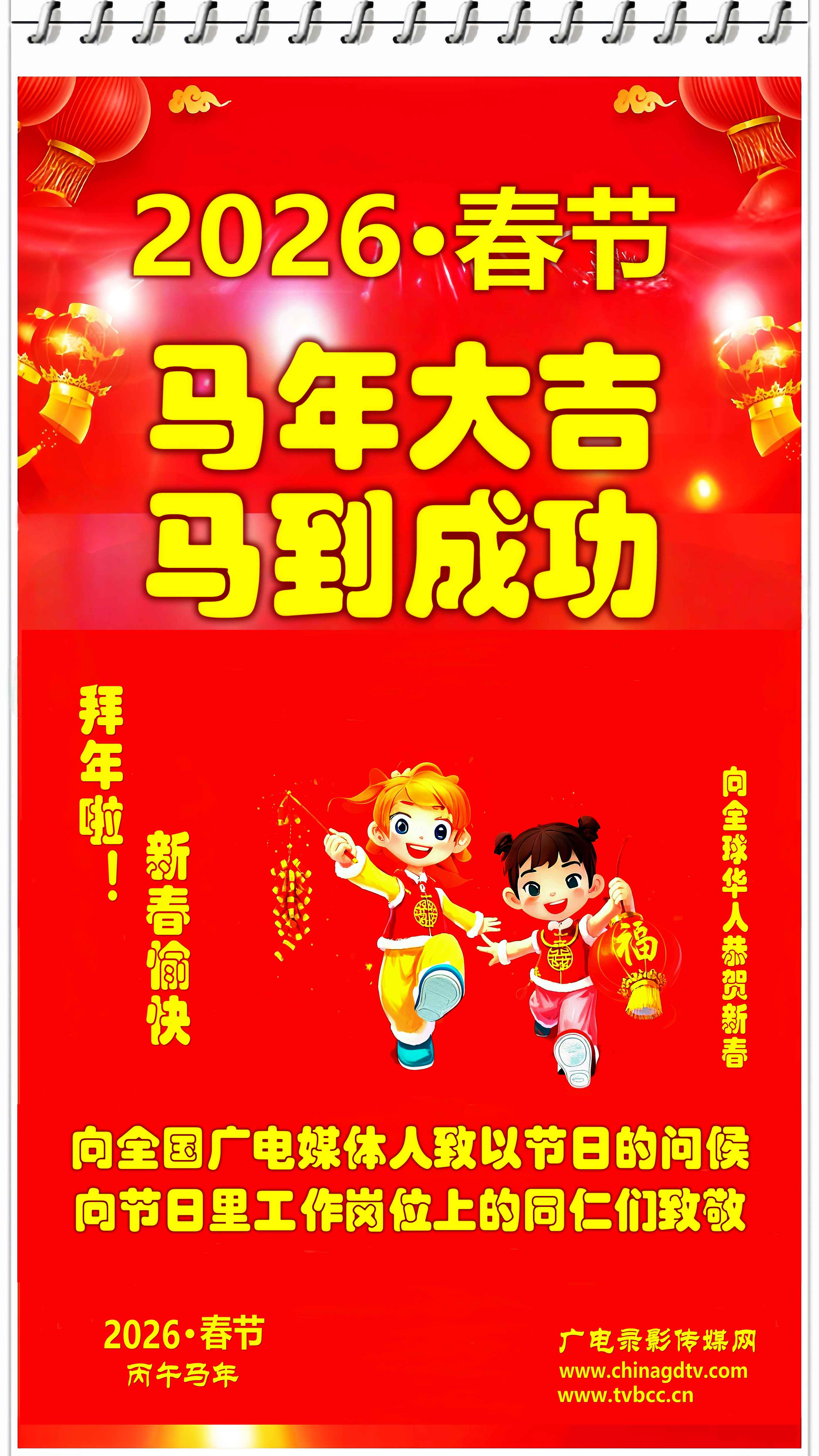 【2026春节】向全国广电媒体人致以节日的问候 2026-02-16 行政办公室 ℃ 0 歌曲:欢乐中国年(演唱:孙悦) Your browser does not support the audio element. 标签: 节日 上一篇:【2026春节】广电录影传媒网向全球华人恭贺新春 下一篇:没有了 相关推荐 【2023春节】广电录影传媒网向全球华人恭贺新春 热烈庆祝中国共产党第二十次全国代表大会召开 2026年元旦向全国媒体广电人祝贺节日 2024年元旦向全国媒体广电工作者和全球网友祝贺 说点什么吧 全部评论(0) 最新 最早 还没有评论,快来抢沙发吧!